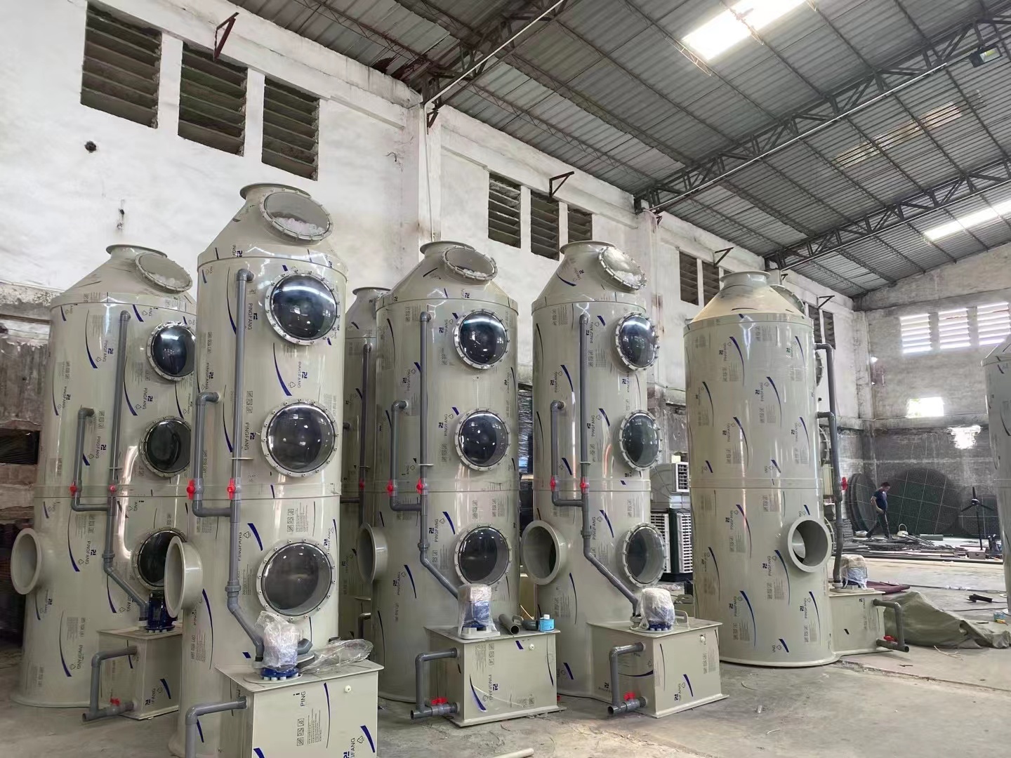 定期检查:定期对PP喷淋塔进行检查,包括塔体、喷头、填料层、循环泵和电控系统等部件。检查部件是否出现损坏、堵塞或泄漏等问题,并及时进行处理。